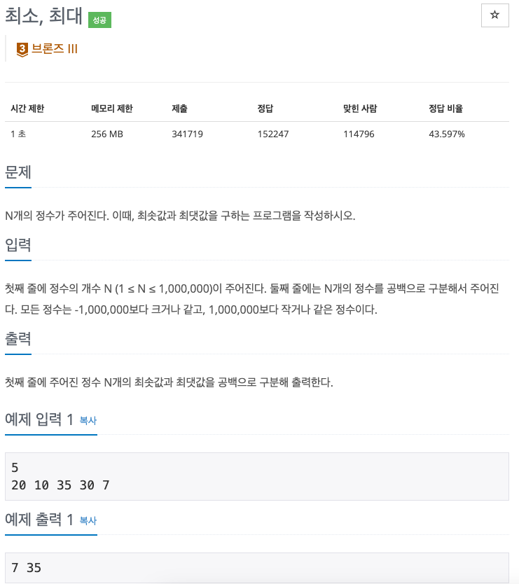 [백준] 10818 - 최소, 최대알고리즘/백준2023. 10. 24. 22:41