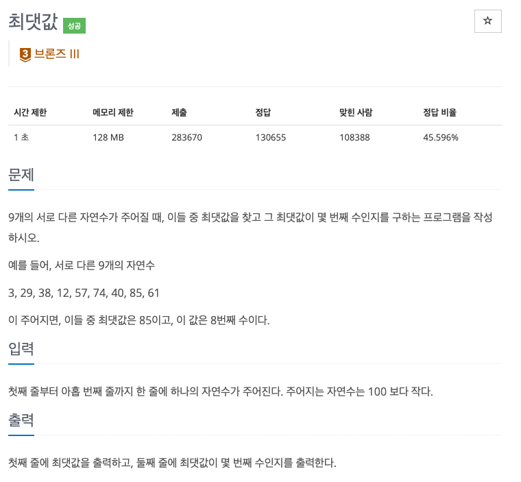 최대값 찾기는 이전 문제에서도 구현했듯이
