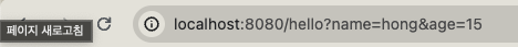 GET 쿼리파라미터 방식은 message body없이 URL의 쿼리 파라미터에 데이터를 포함해서 전달하며