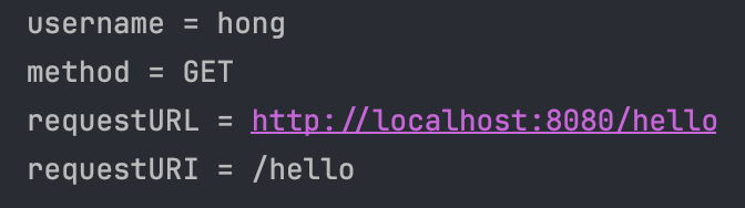 //도메인을 제외한 요청 URI만 조회 (/hello)
