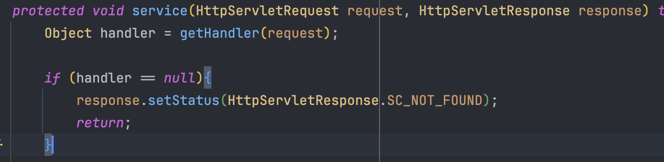 List컬렉션인 handlerMappings변수를 순회하면서 핸들러 매핑정보를 조회하고 없을 경우에는 예외처리 시킨다는 것을 알 수 있다.