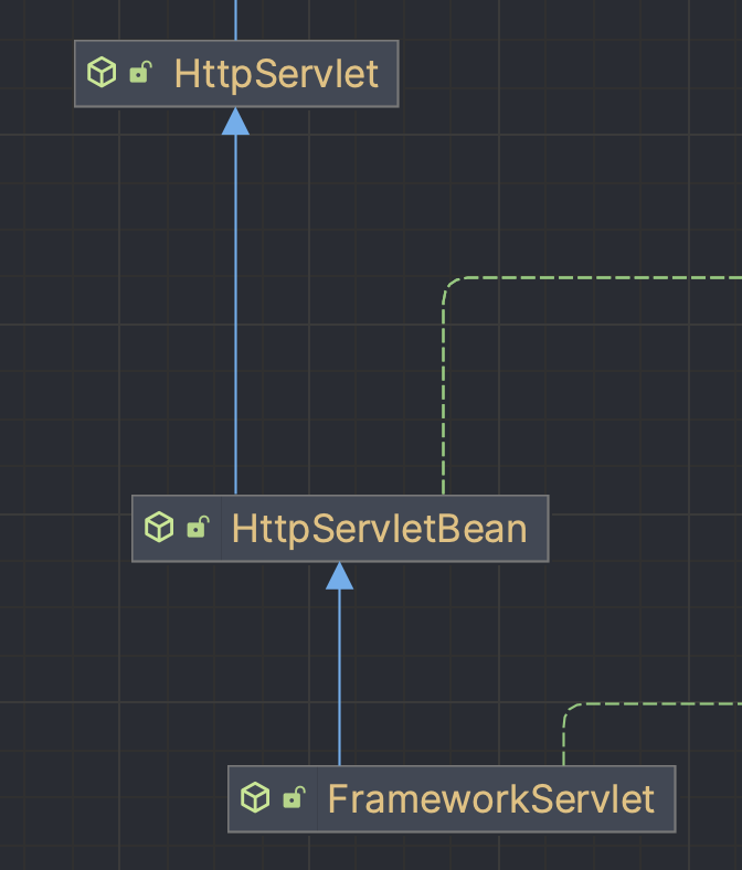 인텔리제이에서 제공하는 클래스 다이어그램보기 기능을 통해 DispatcherServlet도 마찬가지로 HttpServlet을 상속함을 확인할 수 있다