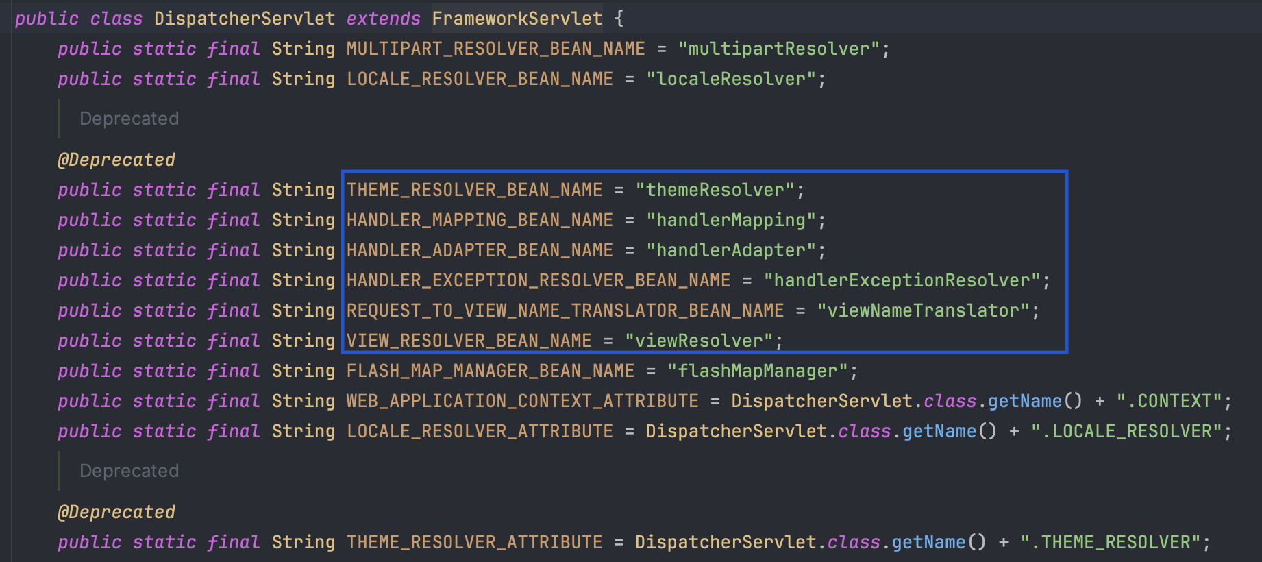모든 코드들이 어떤 의미인지 자세히는 알 수 없지만 이 전 포스팅에서 다뤘던 handlerMapping, handlerAdapter, viewResolver등 이 전에 프론트 컨트롤러에서 구현해봤던 기능들이 DispatcherServlet과 관련이 있음을 알 수 있고 이 말은 곧 FrontController의 기능을 DispatcherServlet에서 동일하게 구현되어있음을 증명한다.