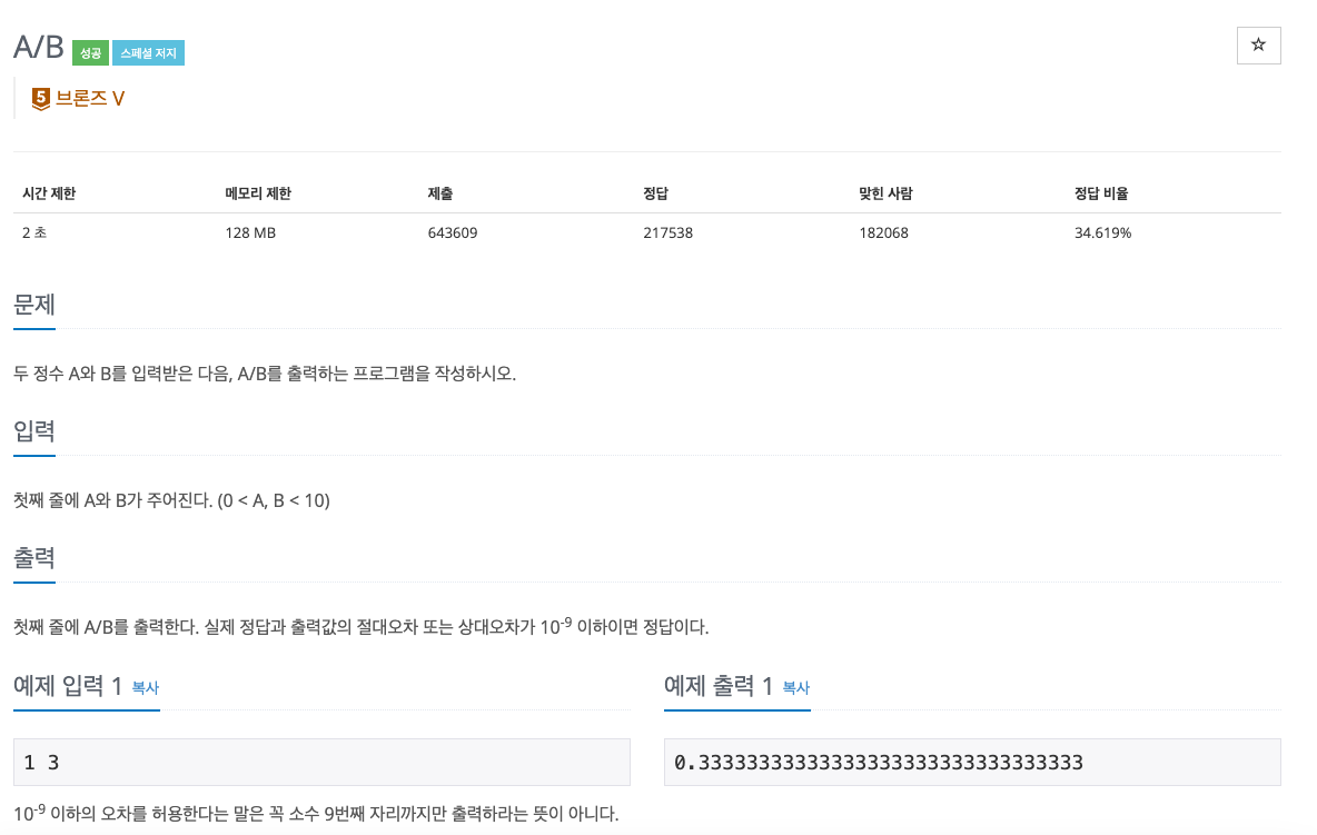 [백준] 1008 - A/B알고리즘/백준2023. 10. 12. 23:54