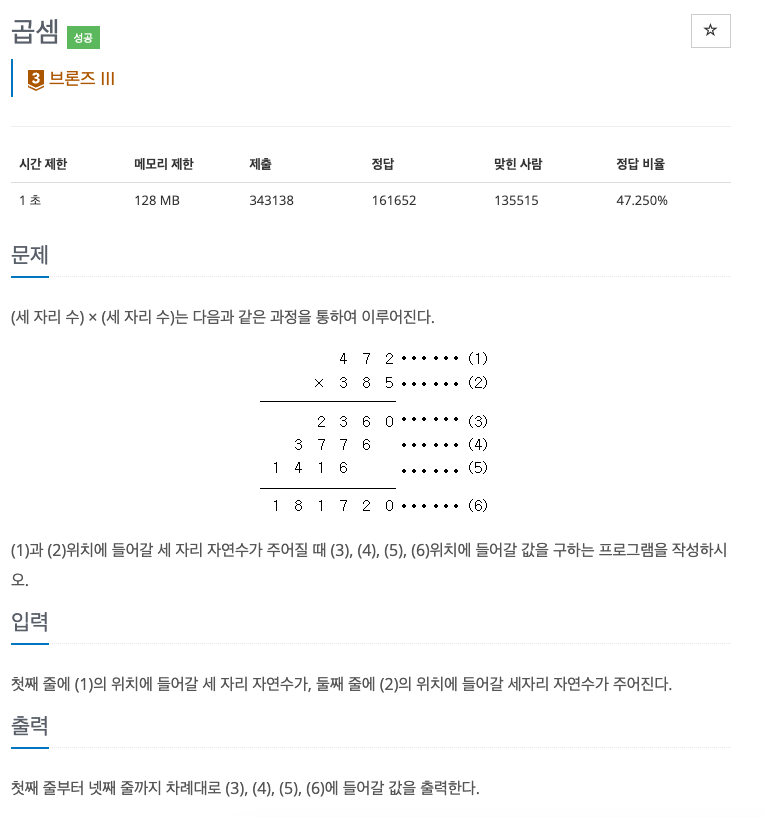 먼저 곱할 수인 A와 B입력값 2개를 받는다.